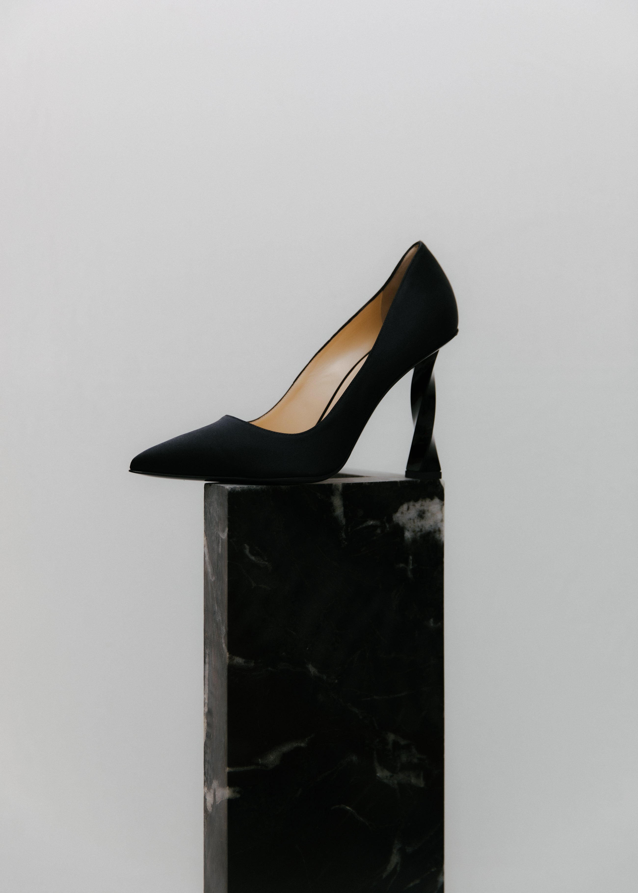 Her designs reflect her Indian-European heritage and a passion for modern art and architecture, fusing unexpected shapes and textures. These elements, combined with clean, sculptural forms, create refined elegance—offering women the opportunity to express their unique style through artful, functional footwear.